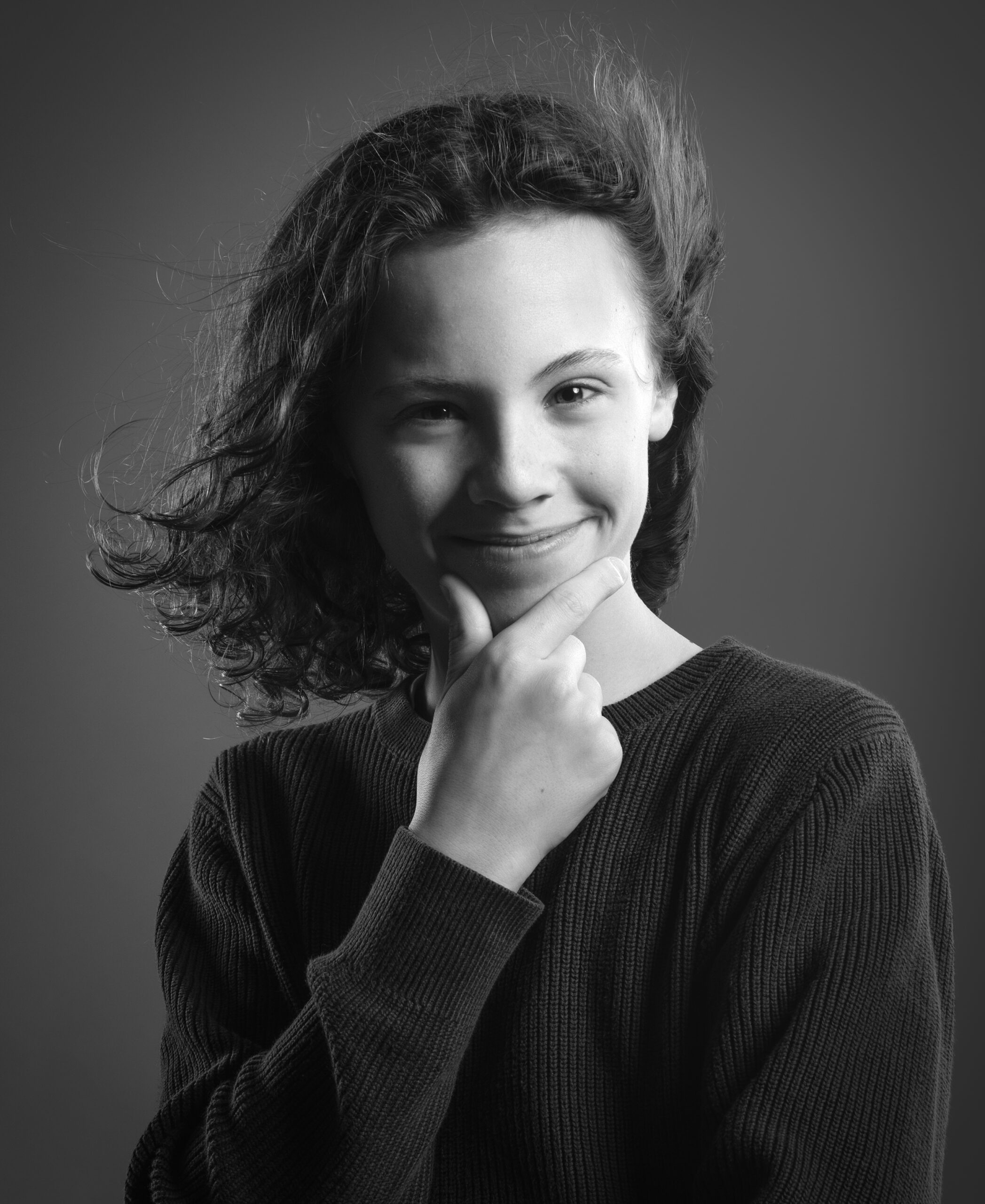 Mijn portretten moeten waarachtig zijn en uitnodigen goed te kijken.Ik gebruik vaak grijstinten. Deze zwart wit abstractie, de compositie en het licht moeten alle aandacht naar de blik van een ander leiden.